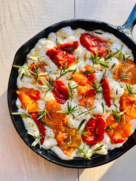 Tomatoes have become synonymous with celebration in my life. That’s probably because my family has a habit of celebrating big in July - my wedding anniversary and both kids' birthdays fall within the same week. Unexpectedly. In the days after we welcomed our youngest daughter, our garden erupted with tomatoes ready to harvest. And the next year, my two kids spent their birthday month plucking and eating them straight from the vine. I cherish the image of tiny dimpled hands reaching up from the stroller for more “matos.”
